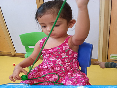 Through practical life activities, children develop independence in caring for themselves and their surroundings. Self-care activities include handwashing, eating independently, communicating toileting needs, and beginning to dress themselves.